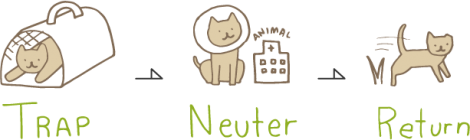 ※TNRとは、「Trap(捕獲する)」「Neuter(不妊去勢手術する)」「Return(元の場所に戻す)」の略語。
